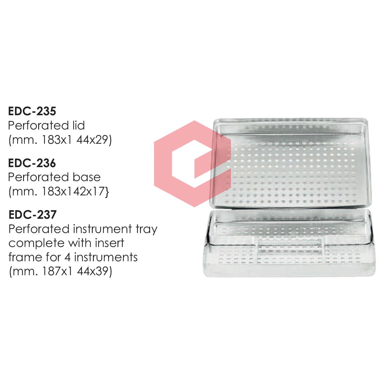 | EDC-236 | Perforated instrument tray complete with insert frame for 4 instruments (mm. 187×1 44×39) |