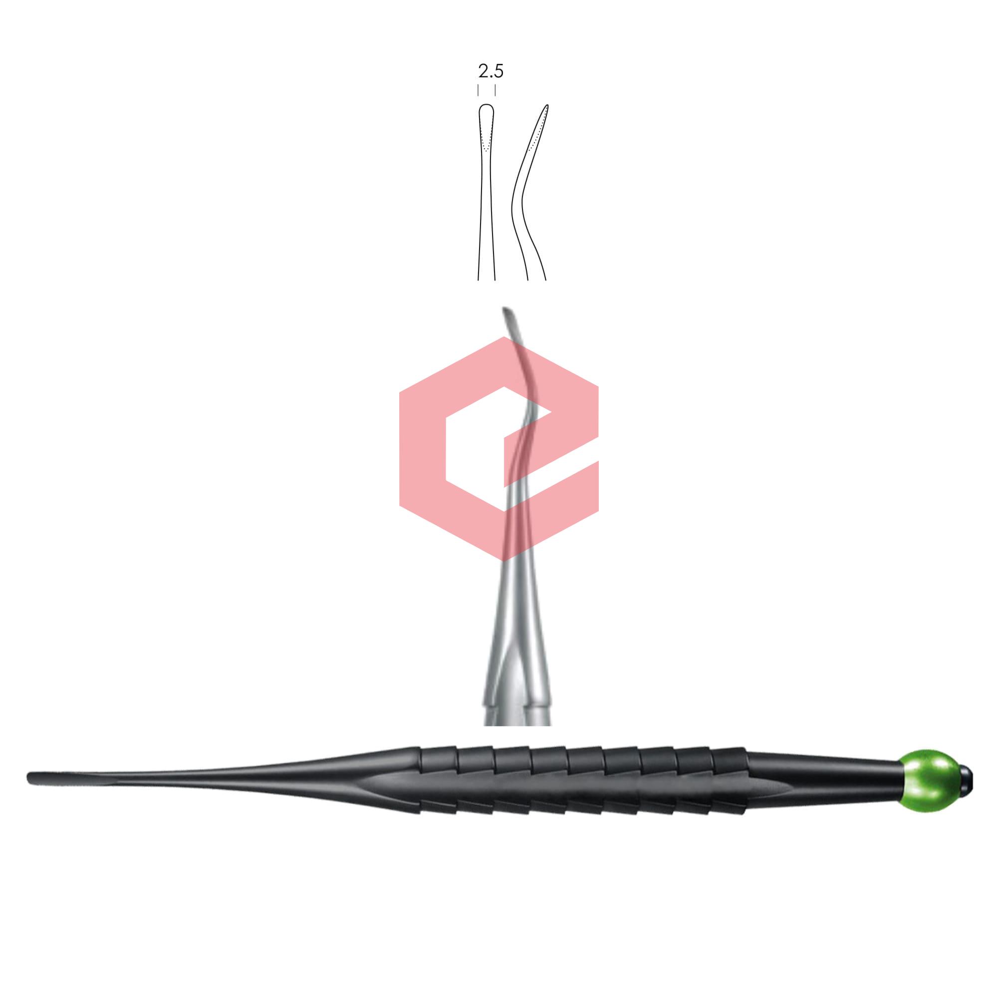 Proximator, curved, 2.5 mm, # 77RS, mesial elevator, purple metallic