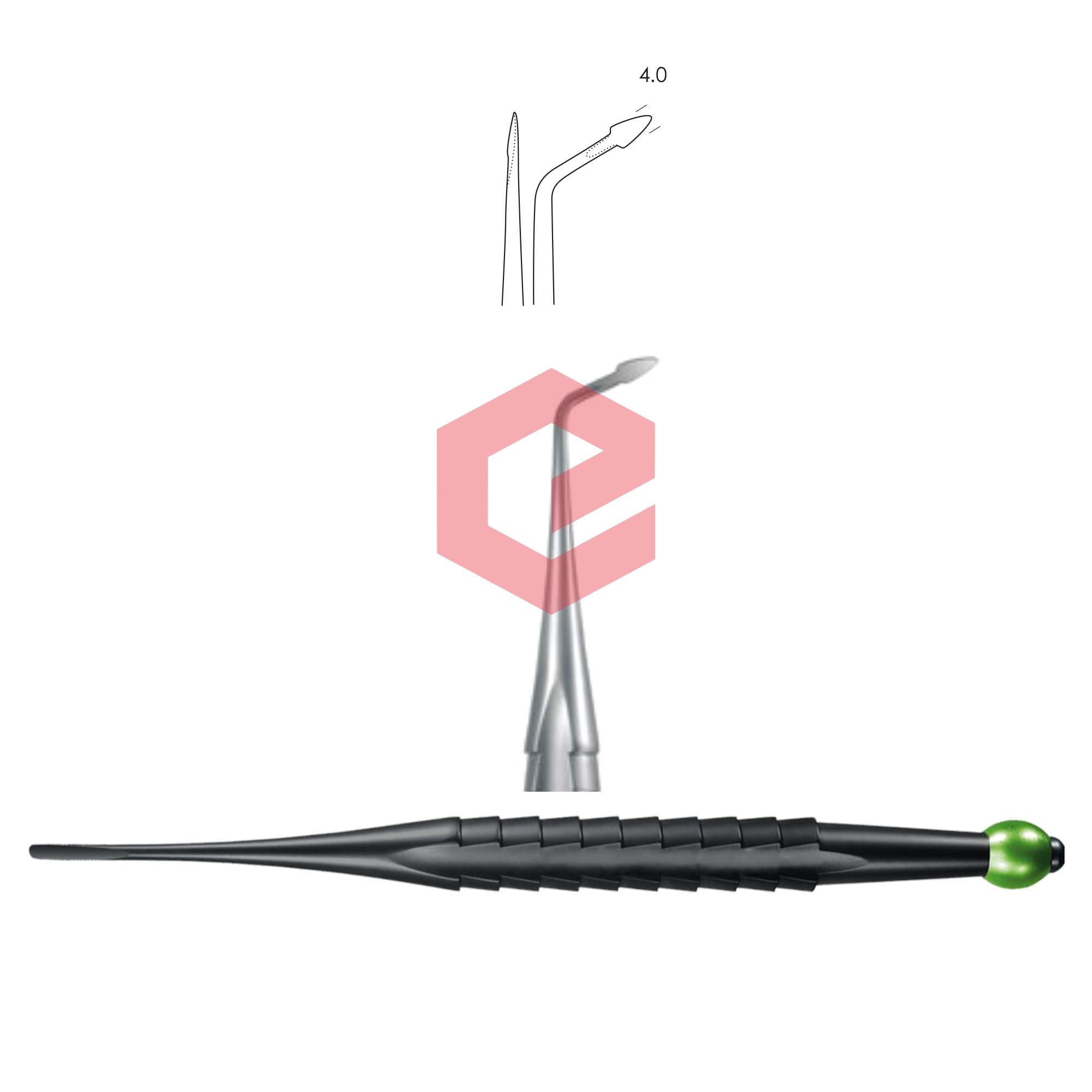 Syndesmotome, curved left, 4.0 mm, for lingual / buccal luxation, yellow metallic