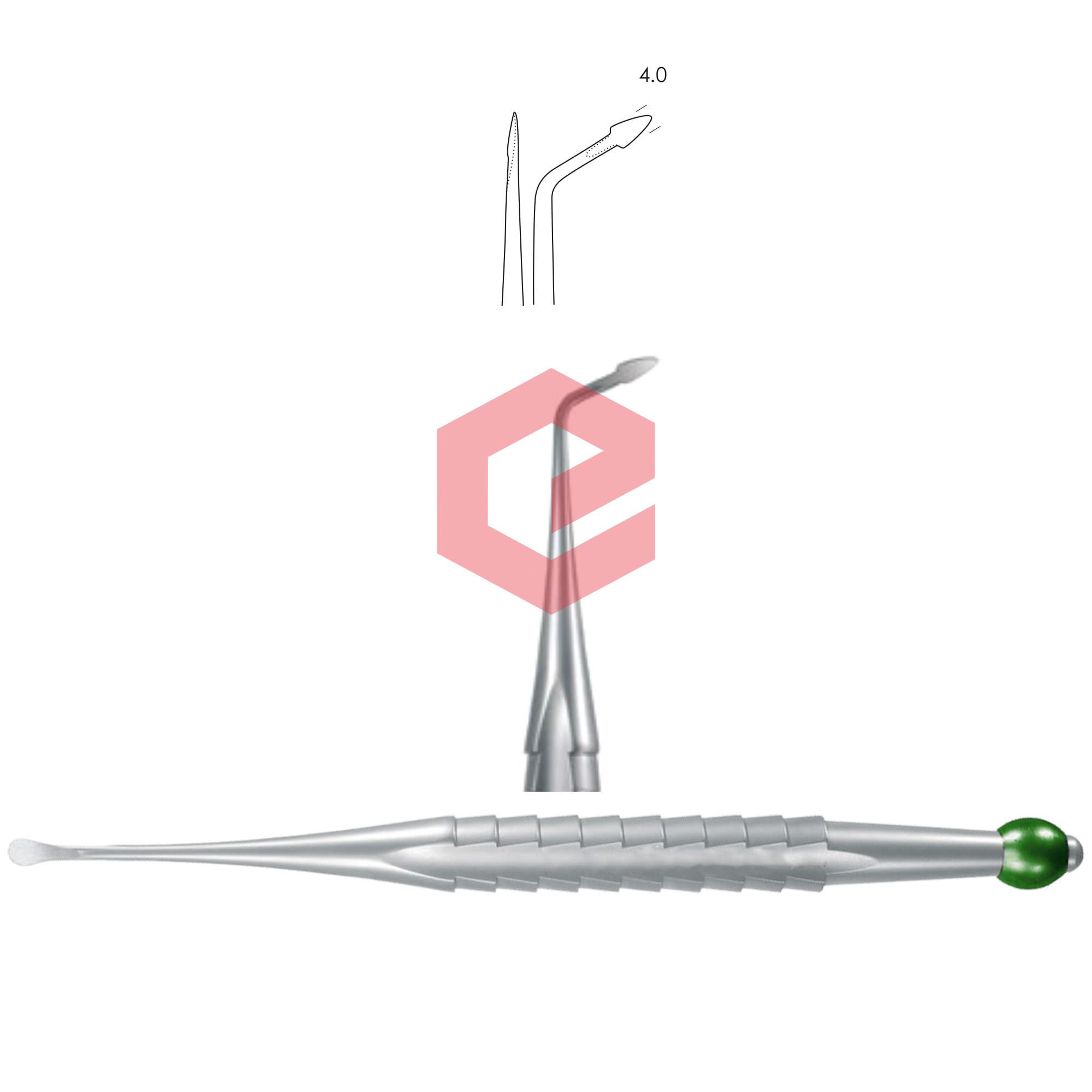 Syndesmotome, curved left, 4.0 mm, for lingual / buccal luxation, yellow metallic