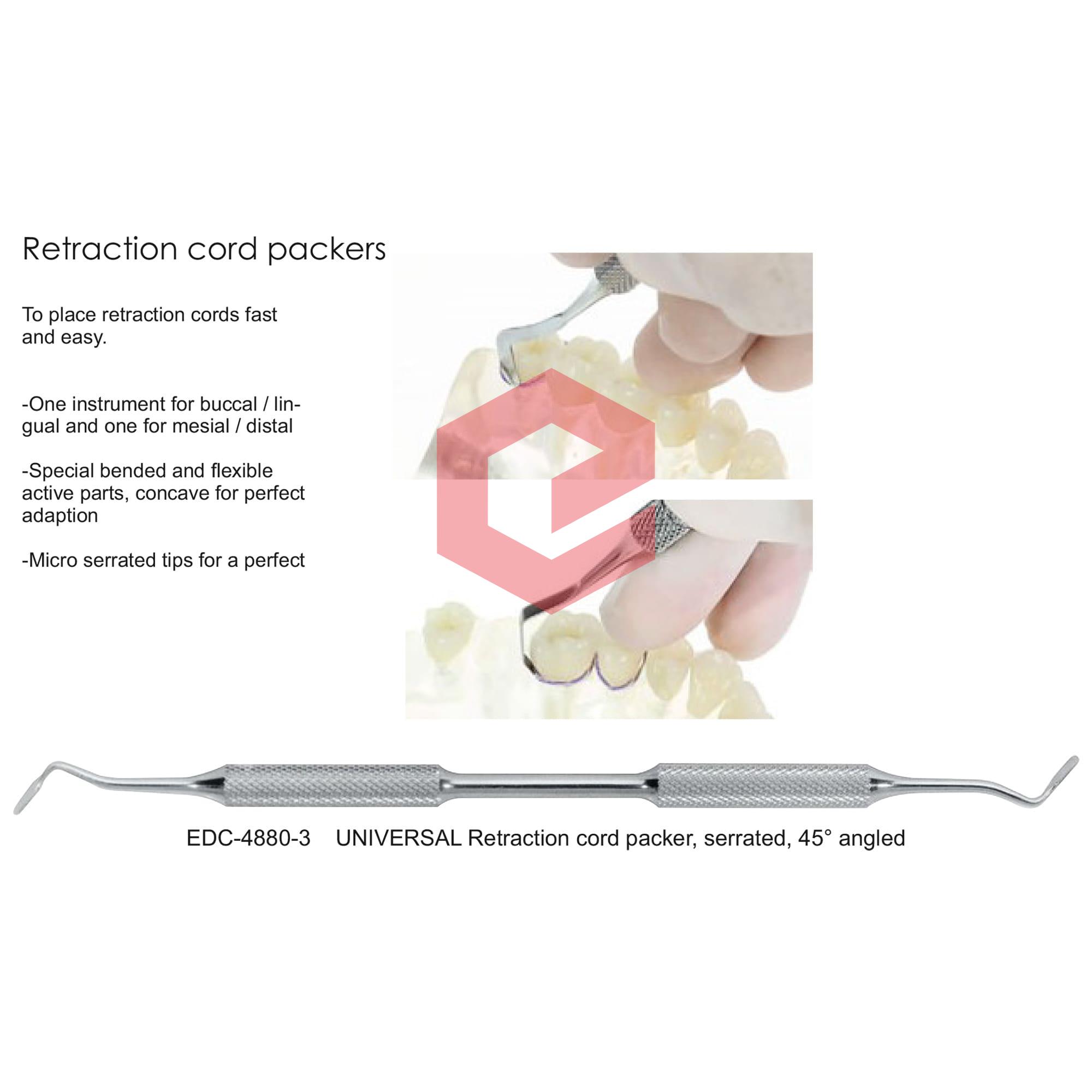 UNIVERSAL Retraction cord packer, serrated, 45° angled
